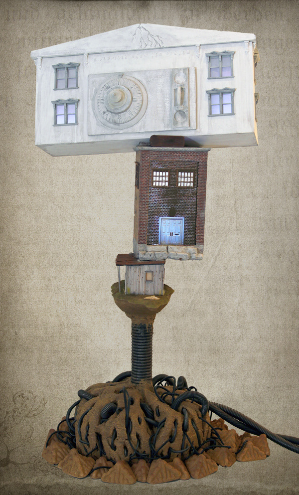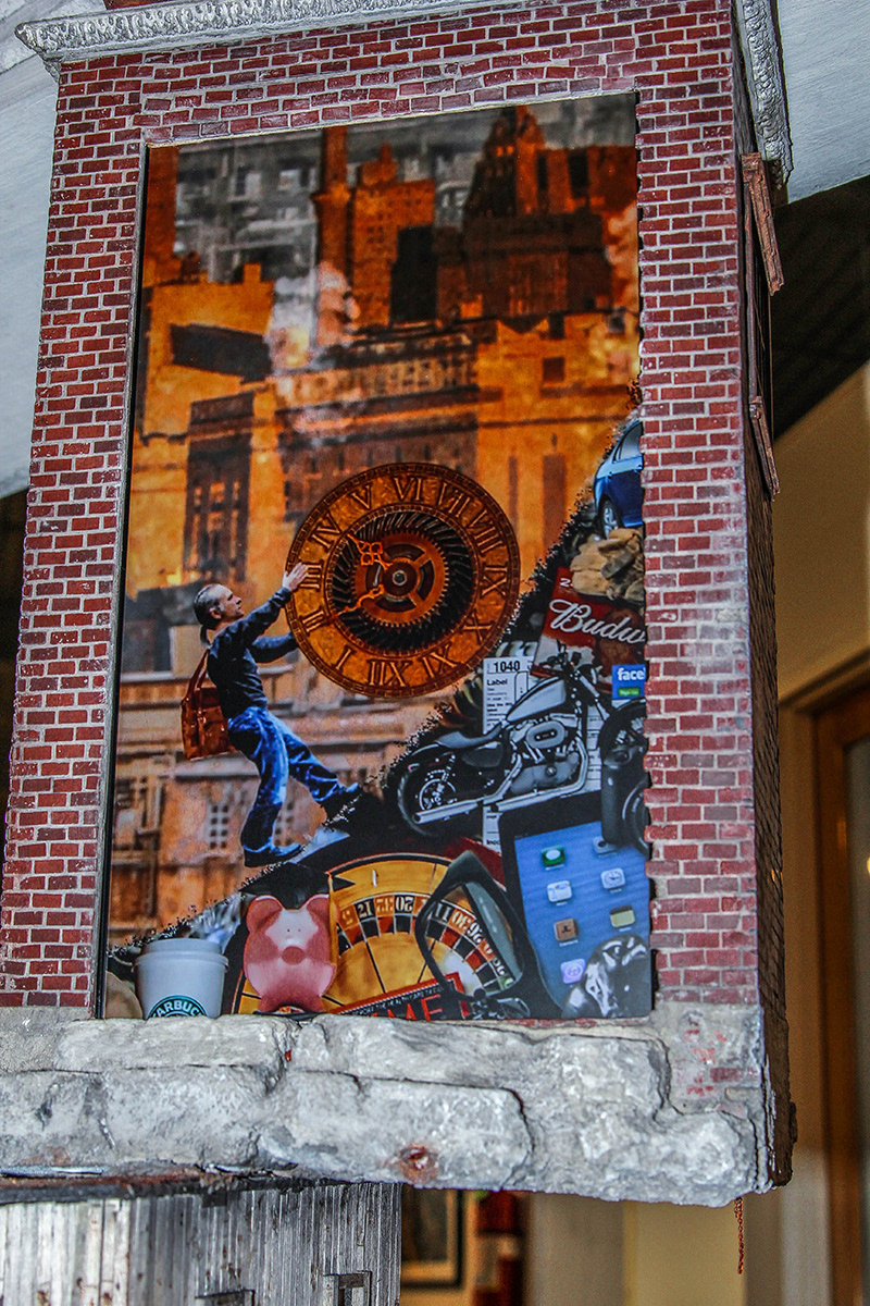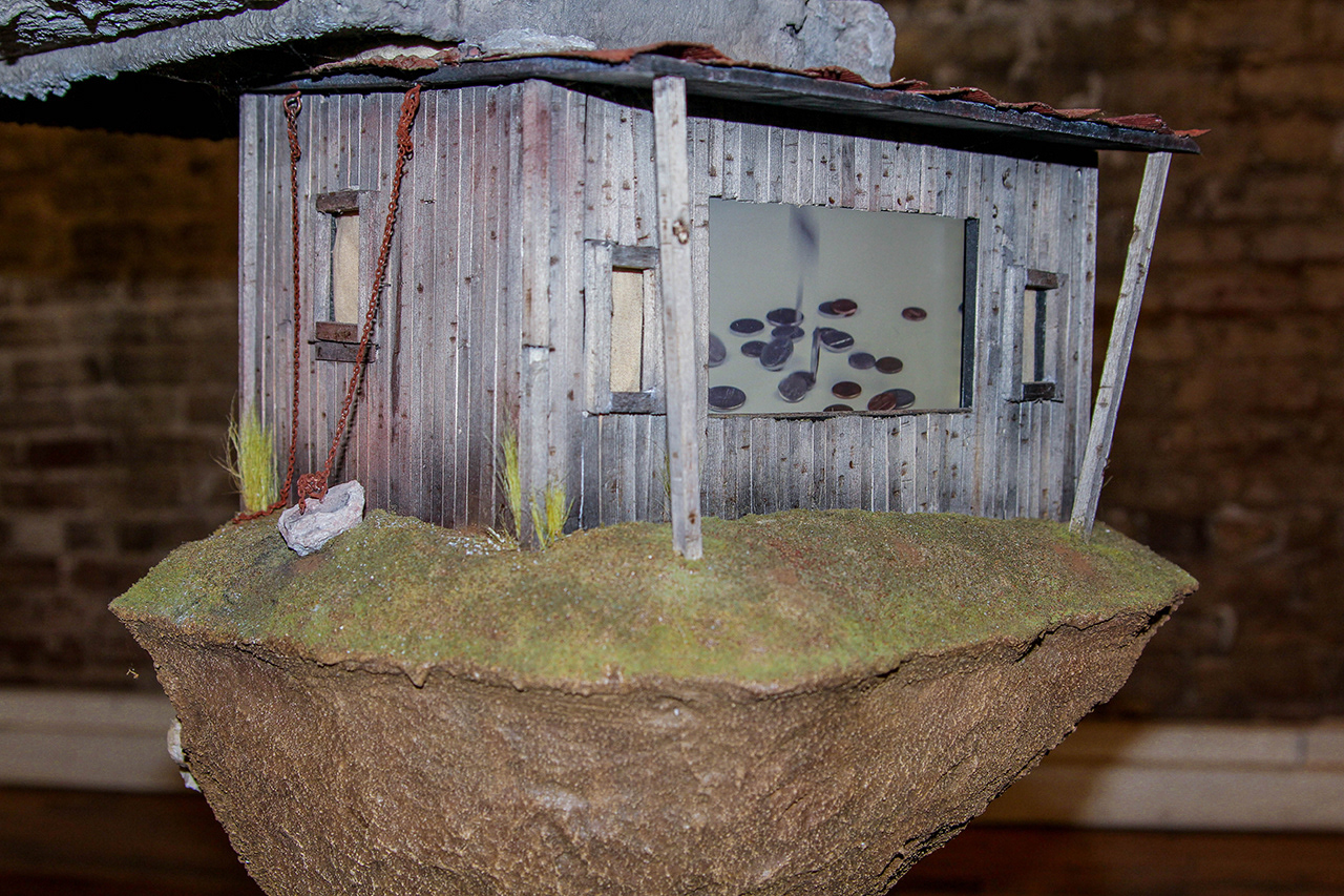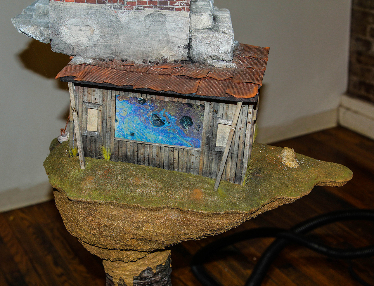 “Layer Cake, a new Tower of Babel” is a Multimedia Sculpture. In my work I use meticulously detailed structures containing video and animated imagery to engage the viewer from an artistic and civic perspective about the human condition. “Layer Cake” challenges an observer’s expectations, beliefs and assumptions through visual representations of information independent from typical associations and attributes. Through challenging the common perceptual outlets in the form of sculpture the symbolic can be used to convey unexpected messages.